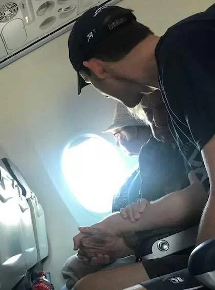 Nữ du khách đã phải bật khóc khi thấy hành động tử tế ngay bên cạnh mình. Nữ du khách rơi lệ khi chứng kiến một người đàn ông nắm tay cụ bà đang rơi vào hoảng loạn trên chuyến bay nội địa Mỹ.