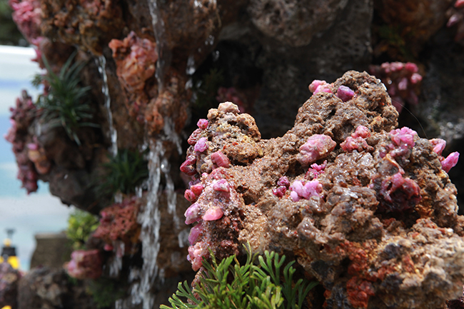 Chỗ gắn ít, chỗ gắn nhiều đá ruby để tạo nên những mỏm đá giống như thật