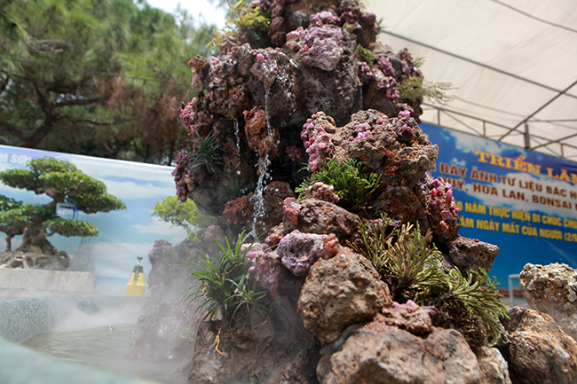 Trong non bộ được lắp ráp máy bơm nước và máy tạo khói để người xem cảm nhận xung quanh mặt nước có một lớp sương mờ ảo