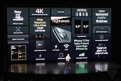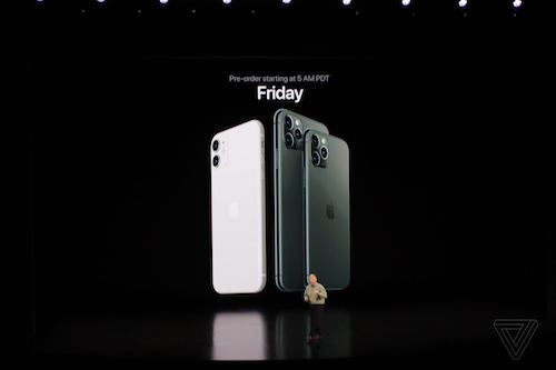 iPhone 11 Pro có giá từ 999 USD, trong khi iPhone Pro Max có giá từ 1.099 USD. Máy sẽ cho đặt hàng từ ngày 13/9. Đồng thời, Apple cũng giảm giá một số model cũ. Cụ thể iPhone 8 còn 449 USD, iPhone XR giá 599 USD.
