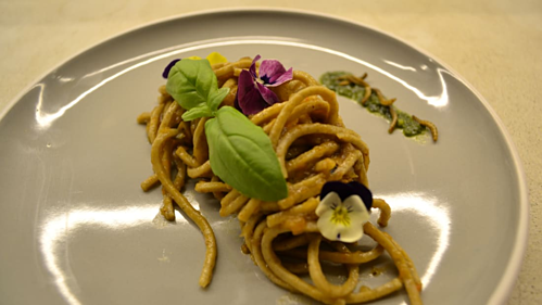 Món mì pasta được ăn kèm với sâu bột. Ảnh: CNN.