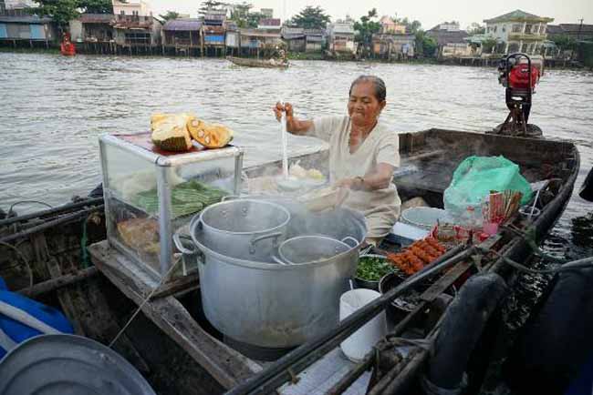 Giống như bất kỳ chợ buổi sáng nào bạn đã từng đến, chợ nổi này là nơi người dân mua và bán nhiều loại trái cây, rau quả cùng các món ăn sẵn như phở, bánh mì và thậm chí là một tách cà phê