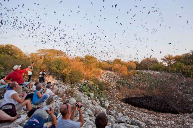 Cứ vào độ giữa tháng 3 đến tháng 10 hàng năm, hàng triệu con dơi đổ ra khỏi hang mỗi đêm để săn mồi. Chúng tạo thành vòng xoáy duyên dáng trên bầu trời.