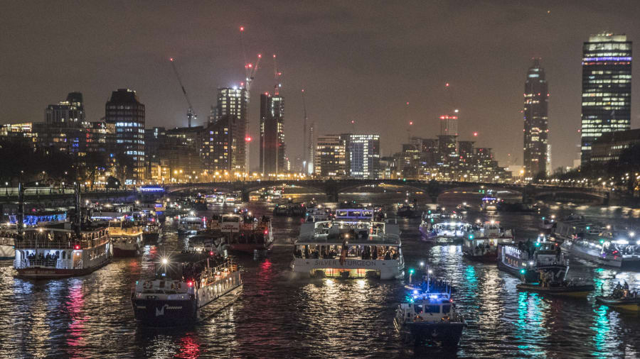 Stained London dọc theo sông Thames luôn mang đến những hình ảnh lộng lẫy đáng chú ý bởi màn pháo hoa đêm giao thừa. Để được tham dự ở đây du khách phải mua vé, nhưng bạn có thể ngắm pháo hoa miễn phí từ các đỉnh đồi như Đồi Primrose, Đồi Nghị viện trên Hampstead Heath, Công viên Greenwich và Cung điện Alexandra, chúng cũng không kém phần hấp dẫn.