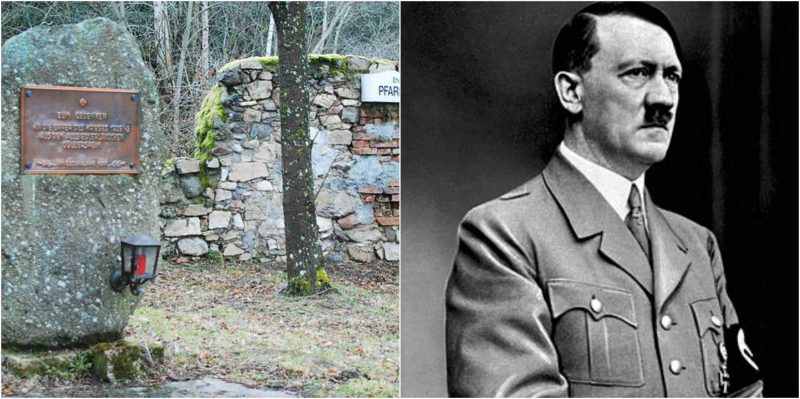 Adolf Hitler và bia đá tưởng niệm tại ngôi làngDöllersheim từng bị hắn xóa sổ. Ảnh: thevintagenews