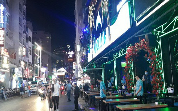 Du khách lo sợ dịch bệnh Covid-19, nên du khách chỉ mang khẩu trang thả bộ tham quan phố đi bộ Bùi Viện chứ không dám ghé vào quán ăn uống như trước đây.