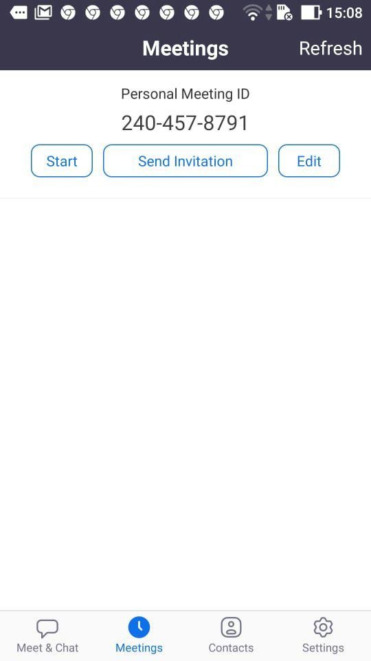 Trong mục Meetings thì chúng ta có những tính năng thiết lập phòng họp thông thường như Start (mở phòng) hay Send Invitation (gửi lời mời). Hãy lưu ý dãy số trong "Personal Meeting ID" của bạn, đó chính là ID phòng họp để người khác tham gia vào.