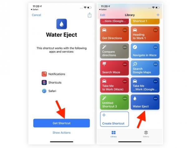 Bước 2: Tiếp theo, bạn tải tiện ích Water Eject, rồi nhấn nút "Get Shorcut" (Lấy phím tắt) trên thiết bị của mình.