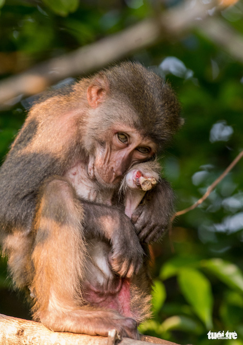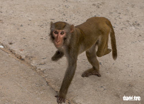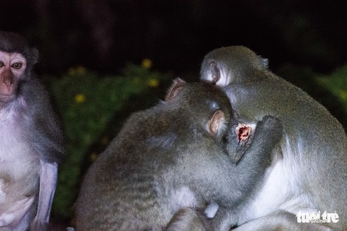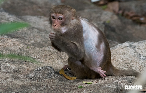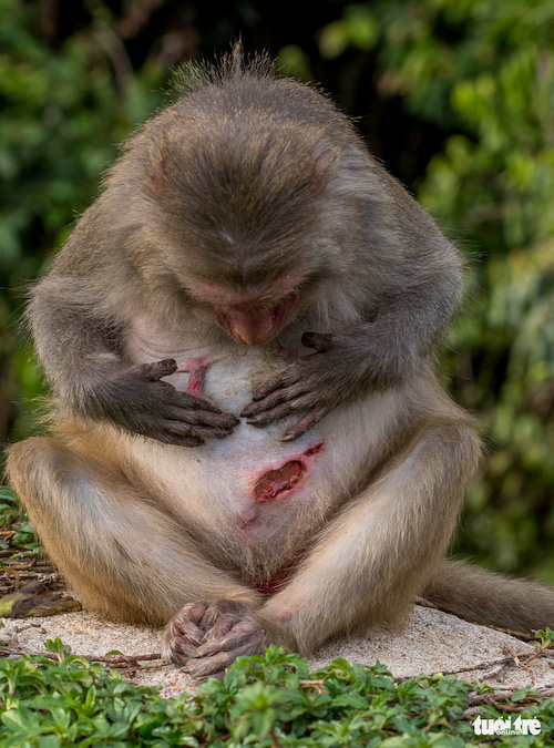 Những con khỉ sống gần chùa Linh Ứng, bán đảo Sơn Trà, Đà Nẵng. Nơi mỗi ngày có nhiều du khách đến đây tham quan. Thật xót xa khi chứng kiến những chú khỉ què quặt, người chảy máu, lòi cả xương.