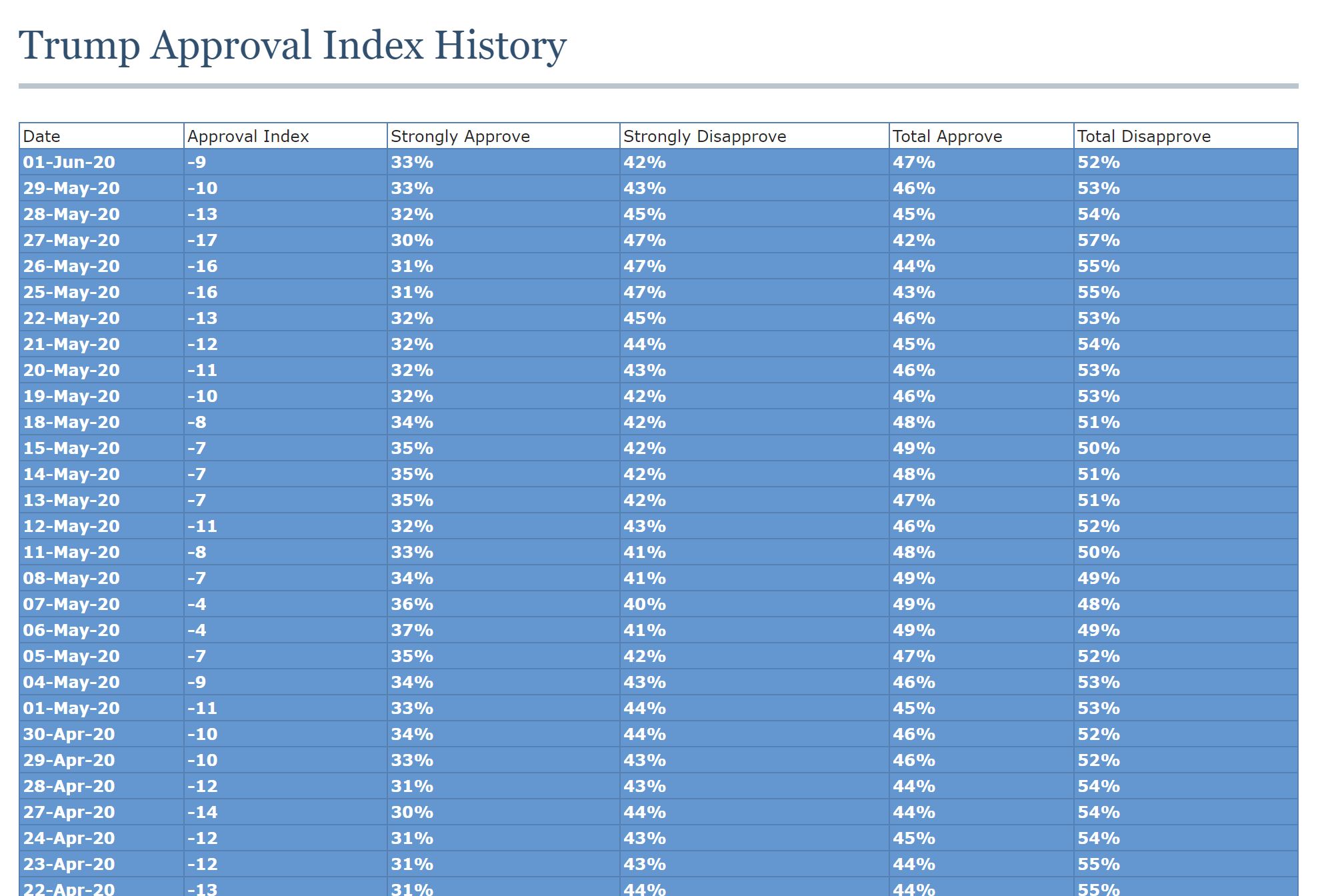 President Trump has seen sagging approval ratings, as the United States deals with protests across the country due to the death of George Floyd, along with the ongoing coronavirus outbreak. Floyd, a 46-year-old African-American man, was killed in Minneapolis on Monday after a white police officer kneeled on his neck for nearly nine minutes.
