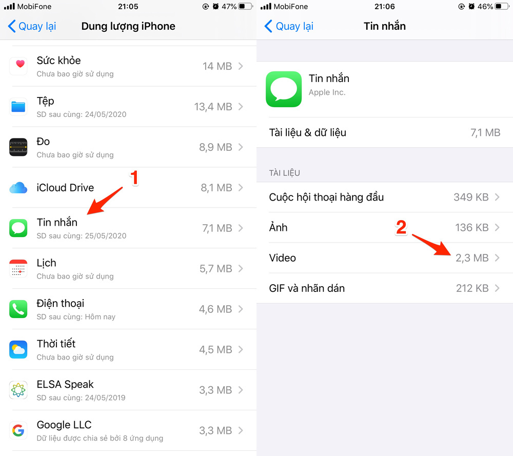 Để xóa các tệp đính kèm, hình ảnh, video... được gửi qua tin nhắn, bạn truy cập vào Settings (cài đặt) - General (cài đặt chung) - iPhone Storage (dung lượng iPhone) - Messages (tin nhắn).