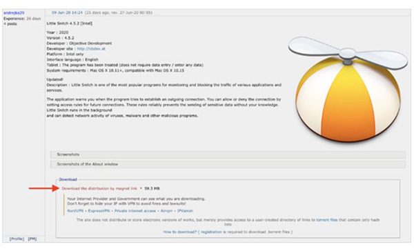 Link bộ cài chứa mã độc được đăng trên RUTracker – một mạng lưới