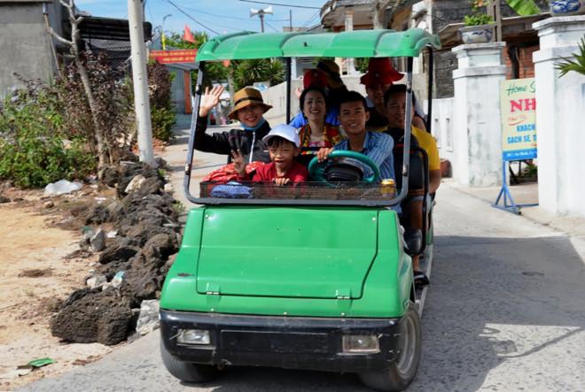 Du khách thăm quan ngắm cảnh ở đảo Bé Lý Sơn bằng xe điện- ảnh N.N