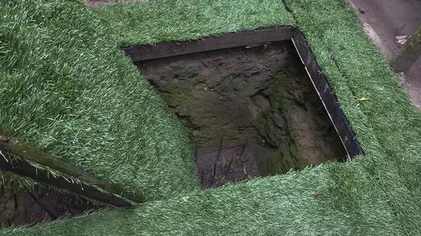 Đây cũng là một trong những cạm bẫy phổ biến trong các lăng mộ cổ. Hố thường sẽ có độ sâu khoảng 3m, độ rộng tùy thuộc vào diện tích lăng mộ và ở dưới sẽ được cắm chông sắt hoặc đao, kiếm... sắc nhọn.