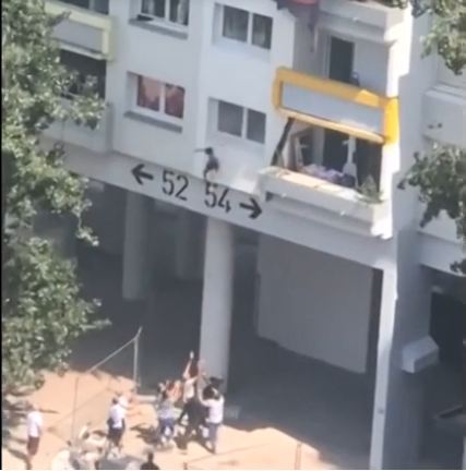 Video ghi lại cuộc giải cứu đầy kịch tính cho thấy bé trai nhỏ tuổi hơn rơi khỏi cửa sổ căn hộ tầng ba khi đám cháy đã bốc lên dữ dội và khói đen cũng tỏa ra từ bên trong. Người dân phía dưới đã đỡ được cậu bé an toàn. Khi mọi người tiếp tục hô hào động viên, bé trai lớn hơn cũng trèo ra khỏi cửa sổ và ngã vào vòng tay mọi người.