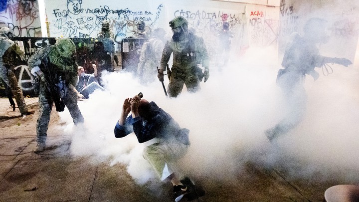 Chính ý tưởng này, nhìn thoáng qua, dường như hoàn toàn điên rồ. Ở Portland, Oregon, các nhân viên an ninh liên bang được trang bị để chiến đấu - mặc quân phục nguỵ trang rằn ri với những phù hiệu không rõ ràng, mang theo vũ khí hạng nặng, dùng dùi cui và hơi cay - đang tuần tra trên đường phố, bắt giữ người vô cớ, tống họ vào xe không có huy hiệu của cơ quan nào. Các nhân viên an ninh này không đến từ các cơ quan được huấn luyện để kiểm soát đám đông biểu tình. Họ đến từ các cơ quan Hải quan và Bảo vệ Biên giới, Nhập cư và Thực thi Hải quan, Cơ quan An ninh Giao thông và Cảnh sát biển. Đây là những người có kinh nghiệm tuần tra biên giới, khám xét hành khách nhập biên, và trục xuất người nhập cư bất hợp pháp. Đây chính là dạng kinh nghiệm không cần thiết để thực hiện một nhiệm vụ tế nhị: cảnh giới một cuộc biểu tình chính trị trong cơn phẫn nộ.