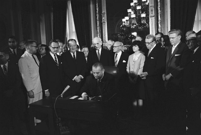 TT Lyndon Johnson kư Đạo luật Quyền Bầu cử vào ngày 6/8/1965 tại Washington, D.C.,