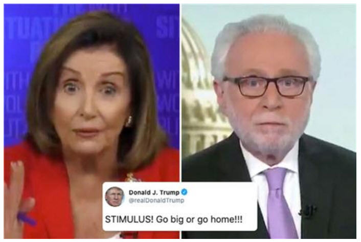 Trên đài CNN, trong khi trao đổi về sự ngưng trệ của ngân khoản cứu trợ Covid-19 với Wolf Blitzer chủ xướng chương trình “Situation Room”, khi Wolf Blitzer hỏi tại sao bà
