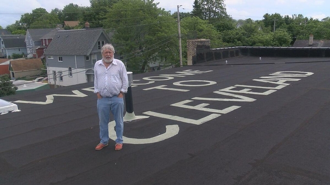 Hơn 40 năm trước, Mark Gubin mất 15 phút để tạo ra dòng chữ trên mái nhà và tác phẩm đó nổi tiếng cho tới nay.