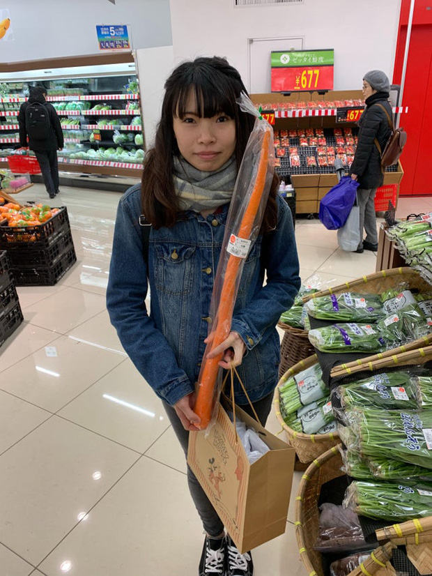 Một củ cà rốt siêu dài được bán trong siêu thị Nhật Bản