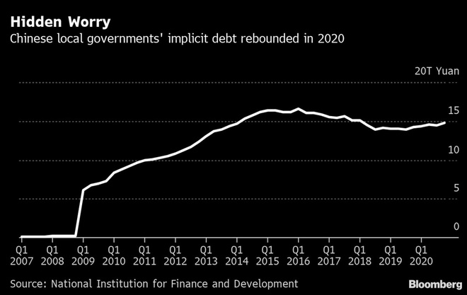 Nguyên nhân đến từ các gói kích thích kinh tế của Bắc Kinh và một loạt khoản đầu tư tham vọng vào cơ sở hạ tầng. Kế hoạch phát triển kinh tế đến năm 2035 của chính quyền ông Tập Cận B́nh cũng thúc đẩy các khoản vay ngoài ngân sách tăng cao.