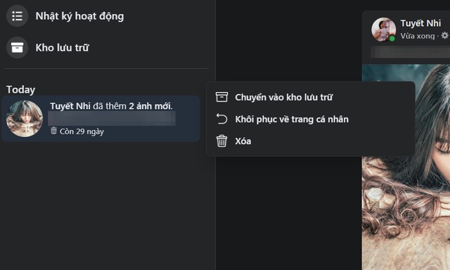 Để thực hiện thao tác này, người dùng vào phần Cài đặt > Tài khoản > Mới xóa trong 30 ngày qua. Sau khoảng thời gian đó, bài viết/hình ảnh sẽ bị xóa vĩnh viễn.