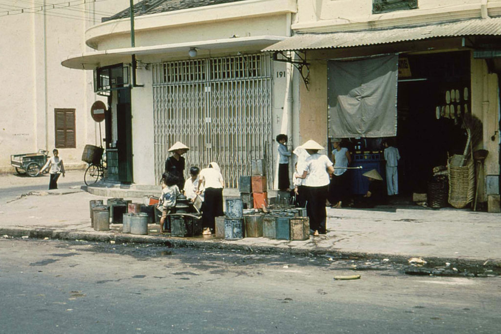 Trước nhà số 380 Phan Đình Phùng Sàigòn có “phong tên” nước công cộng… Ở đó có đông người “chuyên gánh nước mướn” được bà con các hẻm xung quanh “mướn” gánh nước mỗi sáng sớm, gánh từng đôi nước về nhà… Mấy bà (cô) gánh nước khoái đọc cuốn tiểu thuyết Rặng Trâm Bầu của Lê Xuyên! Nước phong tên ở đây được chảy từ cái sa-tô-đô cũng nằm ở đường Phan Đình Phùng… và và… nếu ai… hà tiện, thì khi khát nước, cứ lại phong-tên khòm lưng mở vòi uống… chùa… Bà con gọi là “uống nước khum”…
