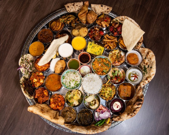 Mâm đồ ăn có 50 món bao gồm cà ri, cơm, bánh ḿ, các món truyền thống, món tráng miệng và đồ uống lassi. Tổng trọng lượng của mâm đồ ăn này lên tới 7,6 kg.