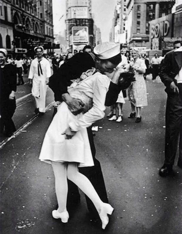 Bức ảnh được chụp vào năm 1945, biểu tượng cho niềm hạnh phúc khi chiến tranh kết thúc. Lúc này, người Mỹ ăn mừng Chiến tranh thế giới thứ II chấm dứt.