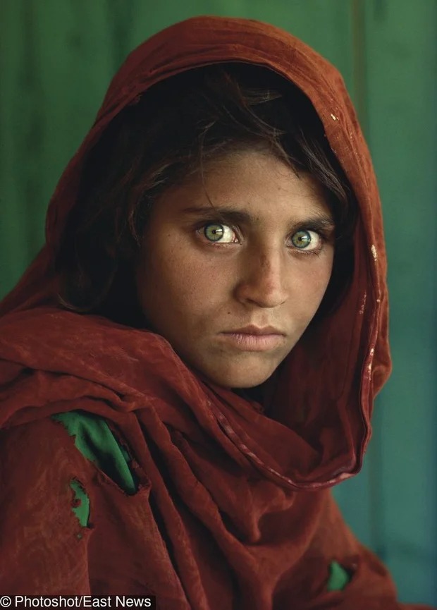 Vào năm 1984, nhiếp ảnh gia Steve McCurry đã đi du lịch vòng quanh Afghanistan để làm một album ảnh đề tài chiến tranh. Bức ảnh cô bé với đôi mắt đầy ám ảnh đã giúp anh nhận được vô số giải thưởng. Lúc này cô gái trong ảnh mới chỉ 12 tuổi và vừa chứng kiến thảm cảnh cả ngôi làng của mình cháy rụi và tất cả người thân đều chết trong lửa.