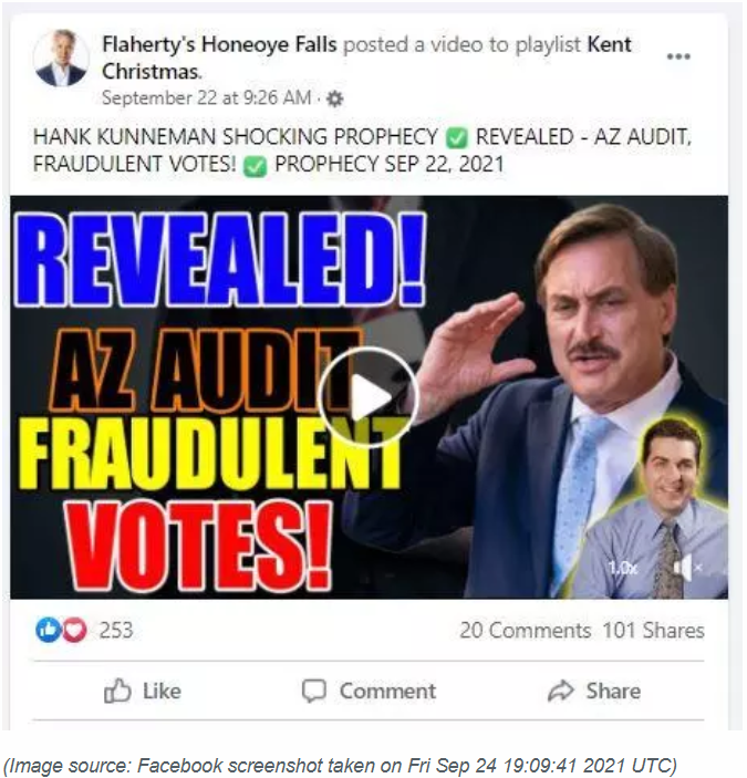 Did Hank Kunneman reveal a shocking prophecy that had to do with the Arizona audit or fraudulent votes? No, that's not true: This video's headline is an example of a clickbait tactic of a spam network that deceptively captures the attention of an American audience with headlines that bear little relation to the content of the video promoted.