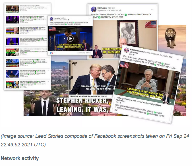 Most of the content found in these spam networks hits political and QAnon themes. This portion of the spam network is using freebooted videos of sermons. These have been reworked with avatars in the corners, possibly to defeat AI recognition tools. Freebooting is a type of content piracy, taking someone else's content to use to make money without investing the time and production effort. This cuts out the original content creator from potential profits and growth of their audience. Some of the pastors whose content has appeared recycled on these network pages are Kat Kerr, Hank Kunneman, Kent Christmas, Robin D. Bullock, Timothy Dixon, Deborah Williams and Amanda Grace.