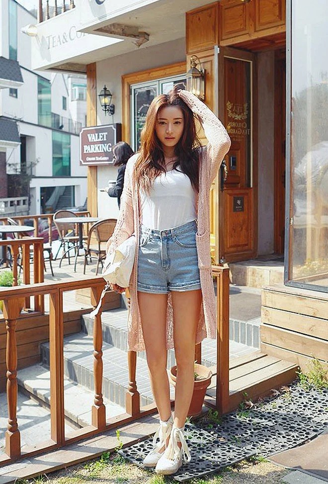 Cardigan mỏng dáng dài, khoác ngoài áo phông + quần shorts ngắn thịnh hành vài năm trước nhưng ở thời điểm hiện tại, set đồ này đã lỗi mốt.