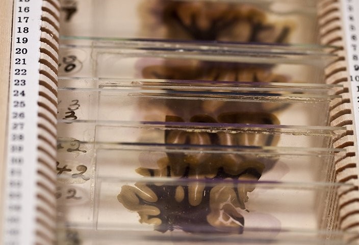 Trong số bộ sưu tập phong phú, có một thứ trông giống như những sợi tảo bẹ, hoặc những mảnh vỏ cây. Nhưng thực tế, chúng có chứa những mảnh ghép từ bộ não của nhà khoa học nổi tiếng nhất thế kỷ XX: Albert Einstein.