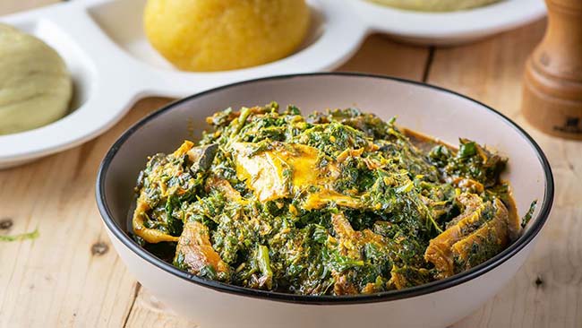 9. Afang soup Afang là một món súp truyền thống có nguồn gốc từ các vùng đông nam của Nigeria. Nó được làm từ sự kết hợp của cá khô, thịt bò, hành tây, dầu cọ, tôm càng đất và gia vị. Súp Afang thường được phục vụ tại các sự kiện lễ hội như đám cưới và lễ kỷ niệm.