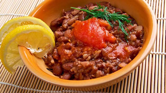 2. Githeri Githeri là thực phẩm chính của người Kenya, bao gồm đậu và ngô được hầm với hành tây, cà chua, đôi khi là khoai tây và thịt. Món hầm này thường được nêm nếm với thì là, nghệ, bột ớt. Theo truyền thống, nó thường ăn riêng nhưng có thể ăn cùng với cơm hoặc bánh mì nướng.
