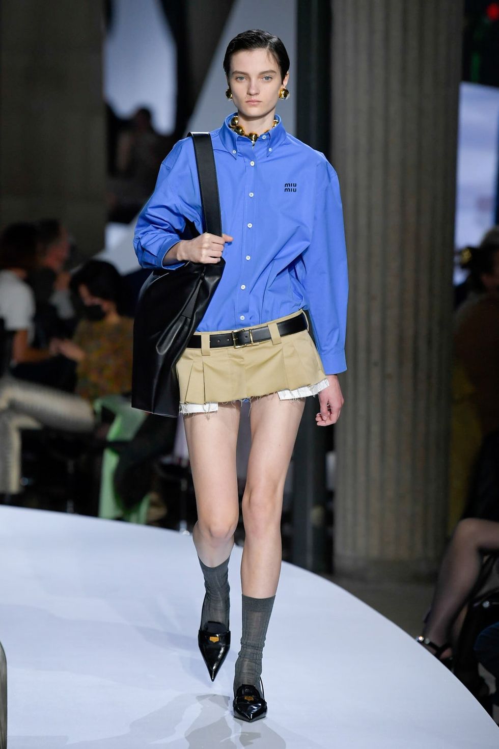 Các xu hướng Y2K lớn nhất, bao gồm mũ trucker, khăn quàng cổ và áo phông của Ed Hardy đã trở lại mạnh mẽ trên Instagram và các sàn diễn. Tuy nhiên, đối với bộ sưu tập Xuân Hè 2022, Miu Miu đã thử nghiệm xu hướng có lẽ gây tranh cãi nhất thời đại: quần mini cạp trễ.