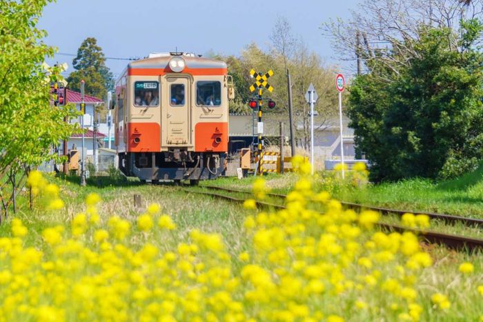 Vẻ đẹp của đường sắt Isumi được tạo nên nhờ sự kết hợp của các loài hoa đang kỳ nở rộ. Hình ảnh đoàn tàu màu vàng chạy giữa ruộng hoa cải nở rộ vào mùa hè hay hàng hoa anh đào phất phơ vào mùa xuân trông giống như một tác phẩm nghệ thuật bằng tranh vậy.
