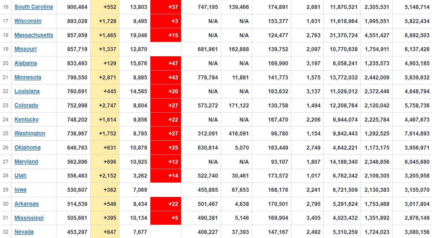 Florida — along with Tennessee, Oklahoma, South Carolina, North Carolina, Texas and Kentucky — followed this trend, as cases started to rise in late June and began to fall in August. Only Kentucky’s seven-day average case rate is higher than the U.S. seven-day average rate, as of Nov. 5.