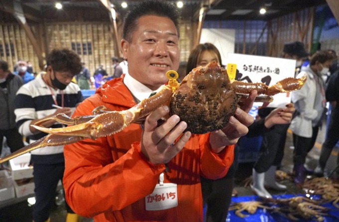 Chủ một nhà hàng đã chi 800.000 yên (7.050 USD) để mua một con cua tuyết Kiwami trong phiên đấu giá ở cảng cá tỉnh Fukui, hôm 6/11.