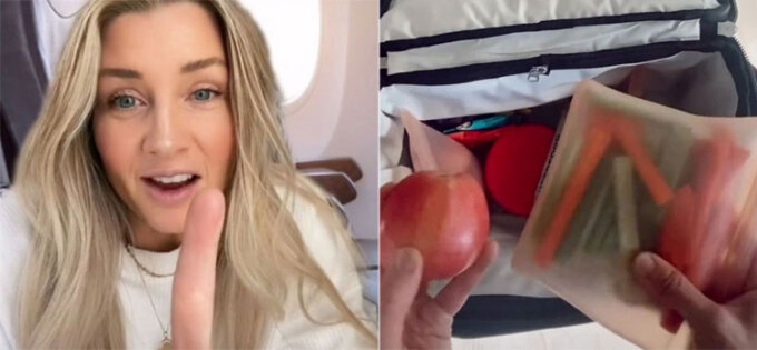 Nhiều người đã đặt câu hỏi: "Vậy nếu không uống rượu, chúng ta nên ăn gì tốt nhất khi lên máy bay, đặc biệt là chặng bay dài?". Kat Kamalani, một tiktoker nổi tiếng với hơn 750.000 người theo dõi và là tiếp viên hàng không đã giải đáp thắc mắc. Mỗi khi bay hay đi du lịch, cô thường mang theo một chiếc túi cách nhiệt, trong đó đựng đồ ăn và một chai nước. Khẩu phần cô mang theo gồm rau, trái cây, thịt viên cung cấp protein và các món ăn nhẹ. Bên cạnh đó, cô cũng mang theo bánh quế và trứng luộc.