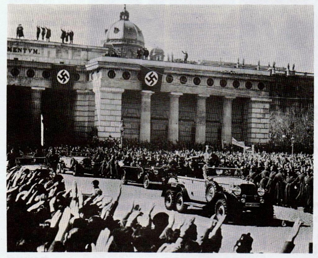 Adolf Hitler trong một cuộc diễu binh của Đức Quốc xã. (Ảnh qua Bota.al).