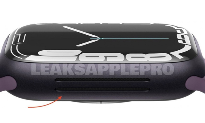 Thay đổi dễ nhận ra nhất trên Watch Series 8 là cạnh bên có một dải loa kép. Loa ngoài của đồng hồ sẽ có âm lượng lớn hơn, phục vụ cho tính năng nghe gọi trực tiếp. Sản phẩm cũng có thể thêm màu sắc mới là viền màu xanh lá nhạt như iPad Air.