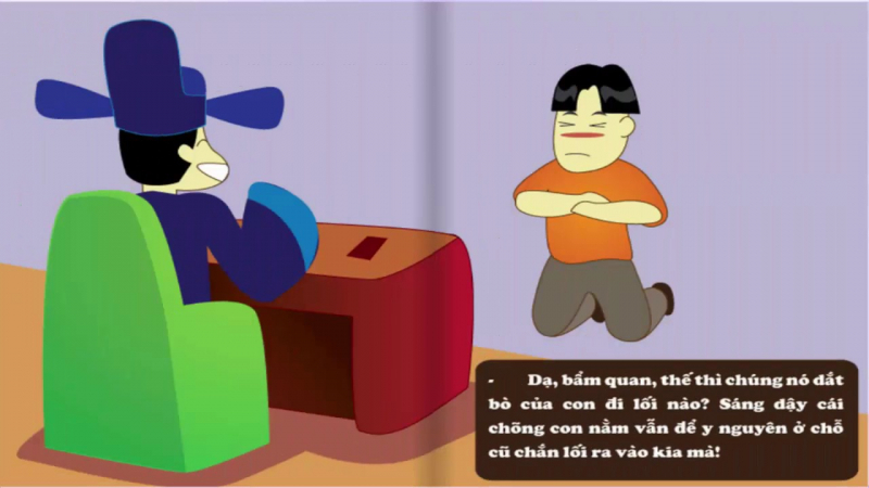 - Dạ, bẩm quan, thế thì chúng nó dắt bò của con chui qua lối nào ạ? Sáng dậy cái chõng con nằm vẫn để y nguyên ở chỗ cũ chắn lối ra vào kia mà!