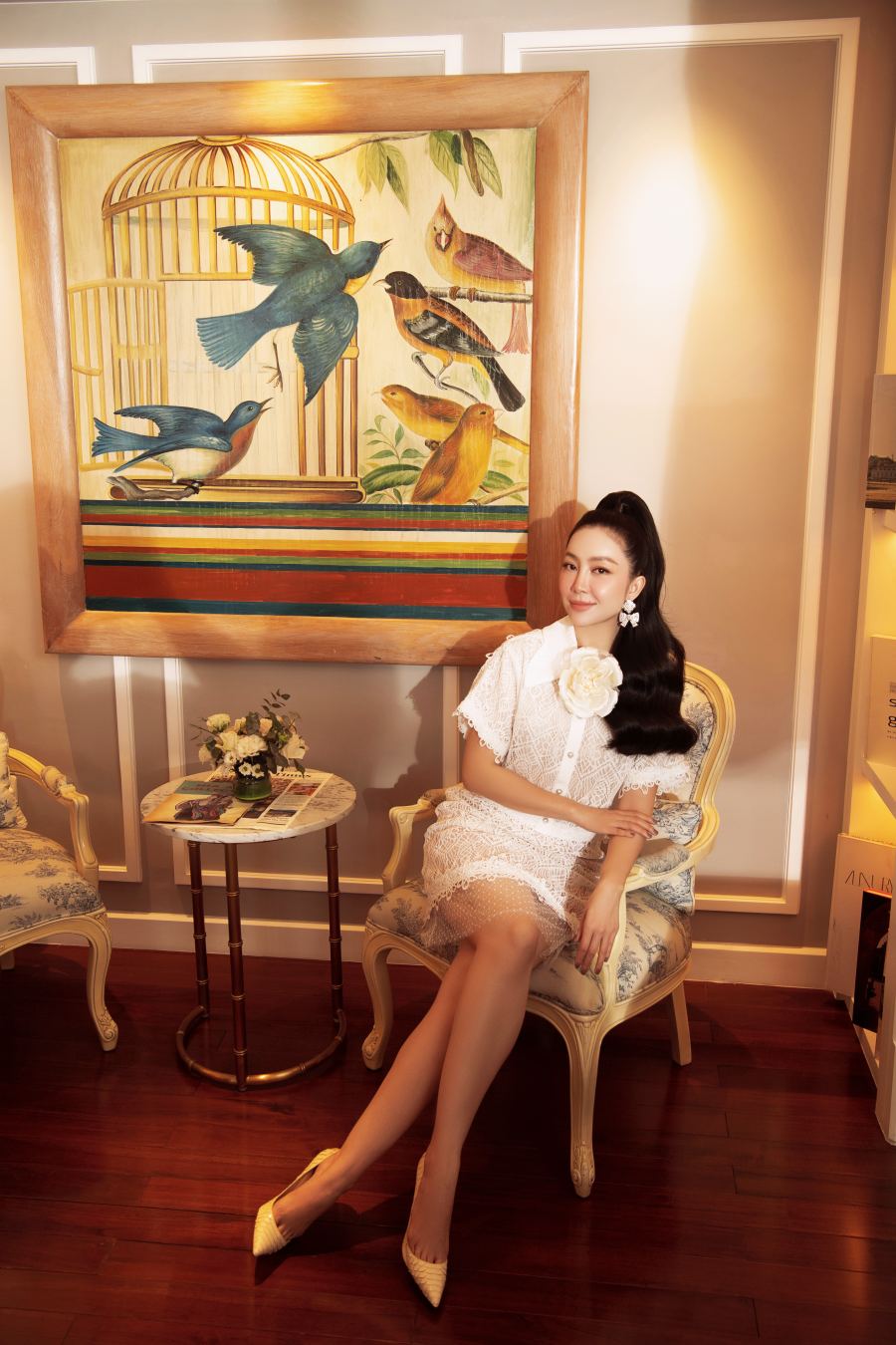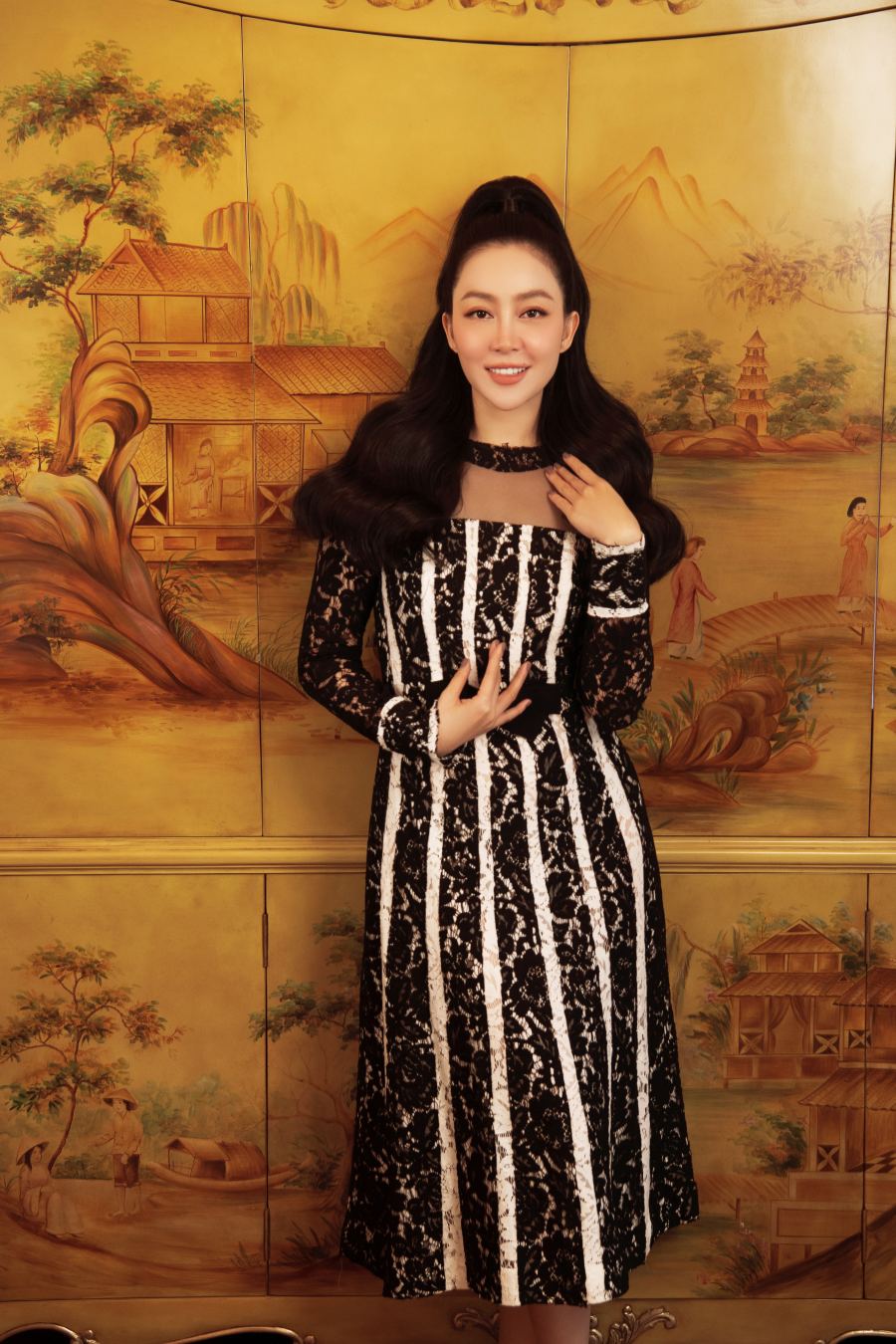 Linh Nga sang trọng với cách kết hợp trang phục cổ điển, tôn vinh thiết kế từ chất liệu ren.