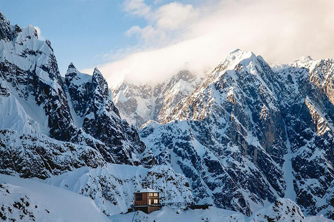 Sheldon Chalet - Alaska: Nhà gỗ Sheldon Chalet nằm khuất xa trong công viên quốc gia Denali của Alaska, ngôi nhà gỗ sang trọng trên núi này chỉ cách đỉnh Denali 16 km. Nằm ở độ cao 1.828m so với mực nước biển, ngôi nhà gỗ này thực sự là một trải nghiệm chỉ độc đáo dành cho các du khách.
