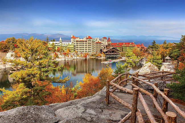 Mohonk Mountain House - New York: Khách sạn này giống như chỉ có trong một câu chuyện cổ tích. Nằm trên bờ hồ Mohonk đẹp như tranh vẽ ở ngoại ô New York, Mohonk Mountain House được bao quanh bởi rừng cây rộng lớn đầy sức hấp dẫn.