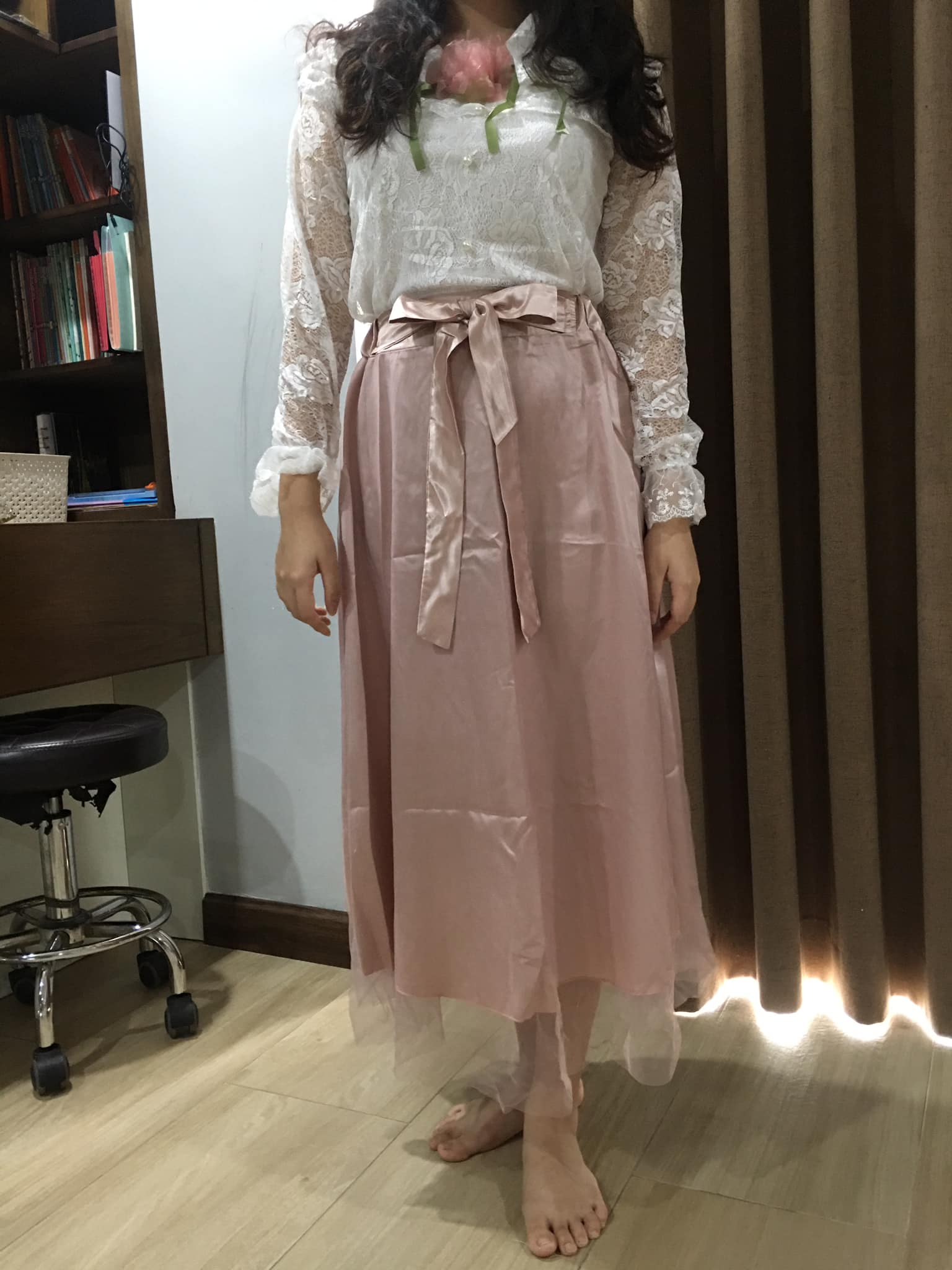 Nếu ảnh mạng đưa ta tới chốn bồng lai thì hình thực tế kéo mood người xem xuống sát mặt đất. Chẳng có chiếc đầm mỹ miều nào cả, thực thể tồn tại duy nhất là tấm váy "hàng mã" khác một trời một vực so với ảnh mạng. Chiếc váy với chất lượng dưới mức trung bình, nhăn nhúm và phản ánh tay nghề gia công kém tới mức khó có ai chấp nhận được