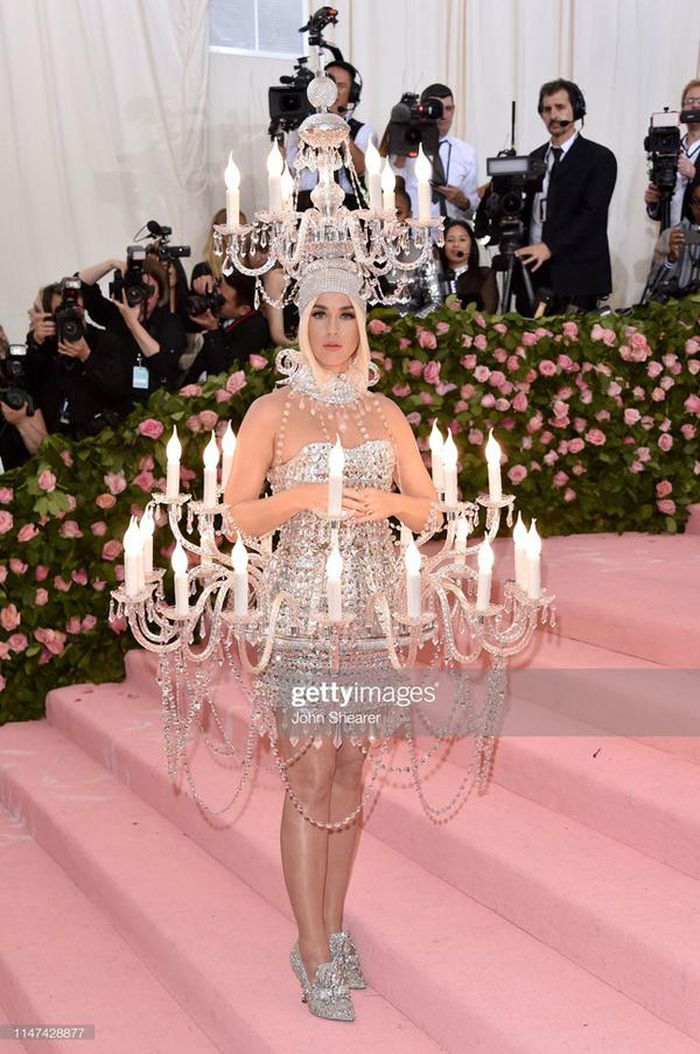 Katy Perry khiến nhiều người mê mẩn tại Met Gala 2019 với trang phục đèn chùm độc đáo mang thương hiệu Moschino.