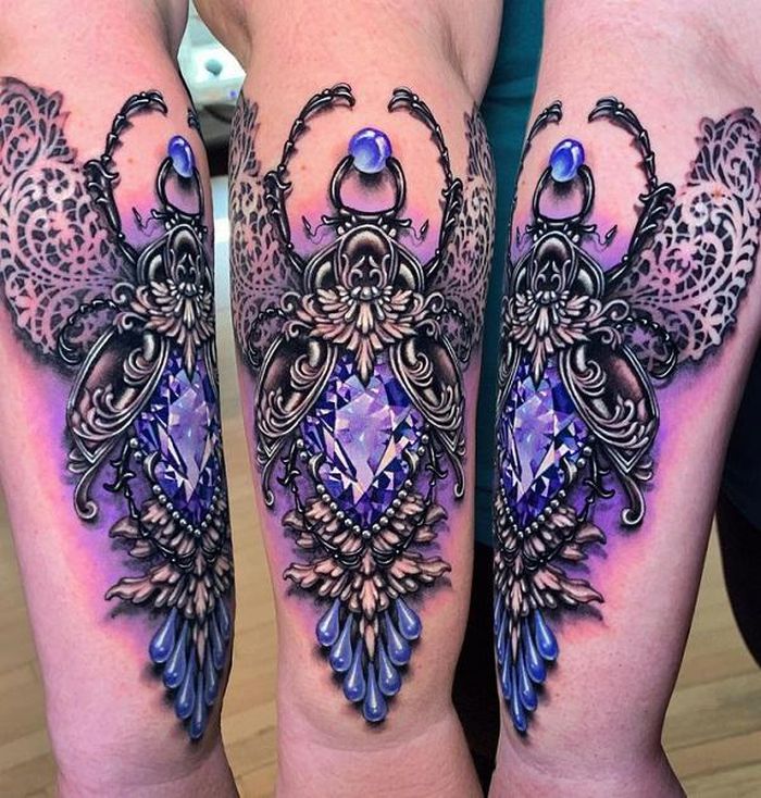 Trái với gam màu xám xịt thông thường, những tác phẩm của 'phù thủy' xăm hình người Mỹ vô cùng sống động, như được 'dát vàng, dát ngọc' trên từng tế bào da.